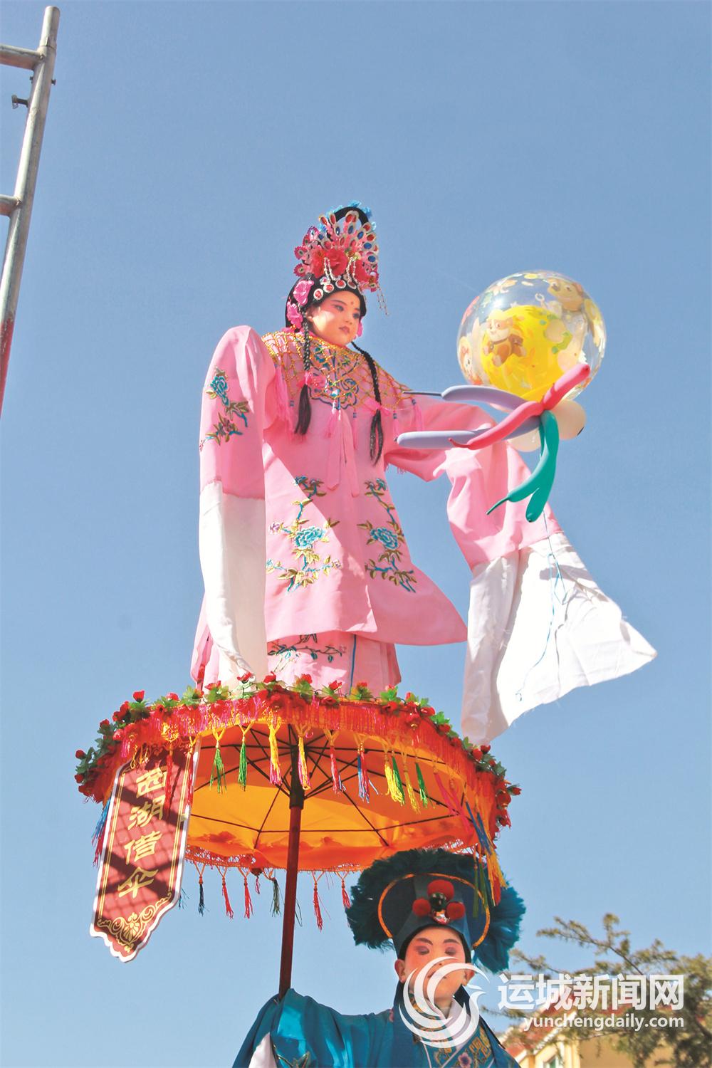 當(dāng)天,河津市僧樓鎮(zhèn)帶來的表演分為“河汾門下”“風(fēng)追大唐”“時(shí)代雄風(fēng)”“春和萬象”4個(gè)篇章,通過原創(chuàng)古風(fēng)舞蹈、武術(shù)、高蹺斗舞、轉(zhuǎn)花燈等多種表現(xiàn)形式,將傳統(tǒng)文化與現(xiàn)代藝術(shù)巧妙融合;河津市小梁鄉(xiāng)不甘示弱,馬拉鼓車、炫酷摩托車隊(duì)表演、花車舞獅、紙馬旱船、打花鼓等社火節(jié)目輪番上演。其中,馬家莊抬閣驚艷亮相,數(shù)米高的架子上,身著彩服保持固定姿勢(shì)的兒童賣萌搞怪,惹得大家捧腹大笑。